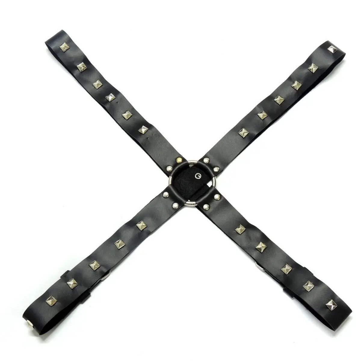 Arreio Masculino Arreio masculino, também conhecida como harness. Ele é em formato de ?X?, possui o interior aveludado e detalhes em arrebites, ideal para você sucumbir aos seus fetiches mais ousados.