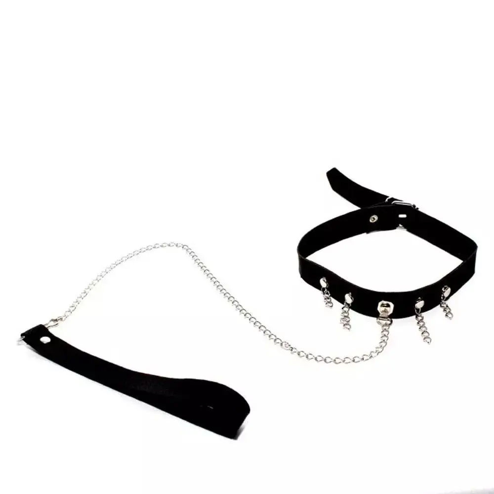Coleira BDSM com Guia em Couro Sintético com Detalhes de Metal